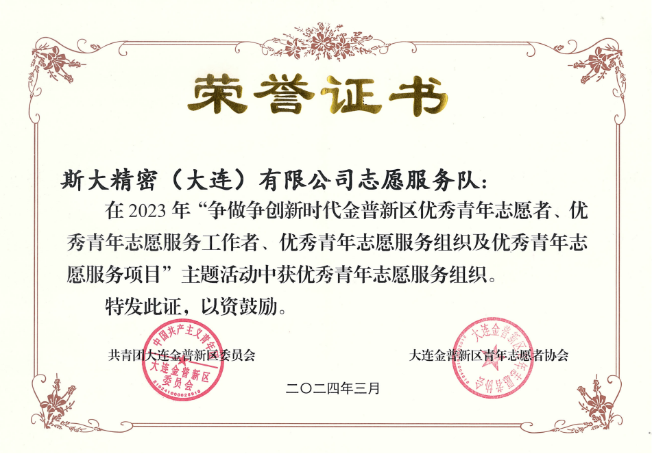 我公司榮獲2023年度“金普新區(qū)優(yōu)秀青年志愿服務(wù)組織”稱號
