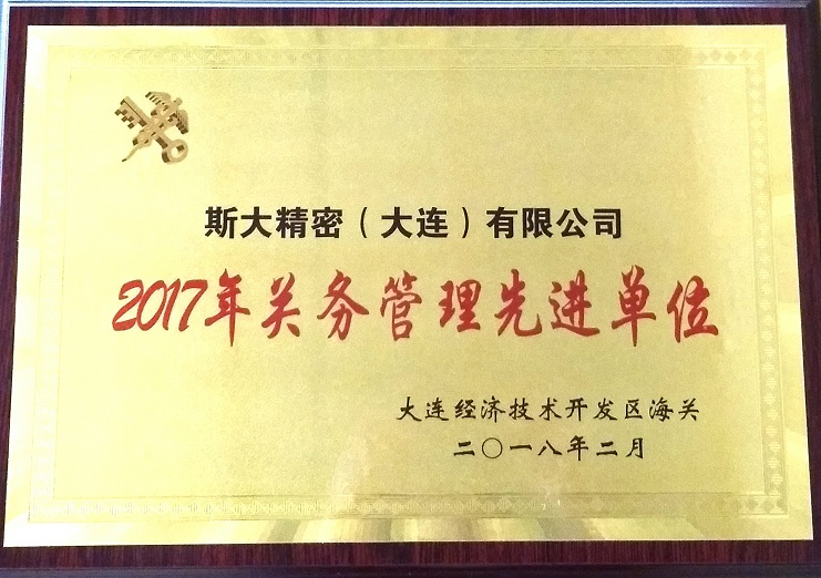2018年2月28日,大連開(kāi)發(fā)區(qū)海關(guān)召開(kāi)2018年支持企業(yè)發(fā)展暨2017年關(guān)務(wù)管理先進(jìn)單位表彰大會(huì),我公司繼上年度后,再次獲得2017年度「關(guān)務(wù)管理先進(jìn)單位」稱號(hào)。