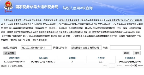 我公司被國家稅務(wù)總局大連市稅務(wù)局評(píng)選為大連市“2017年A類納稅人”。A類納稅人不僅是企業(yè)誠實(shí)守信,按章納稅的證明,而且還可享有兩年內(nèi)免除稅務(wù)稽查,優(yōu)先辦理各項(xiàng)涉稅事宜等優(yōu)惠待遇。